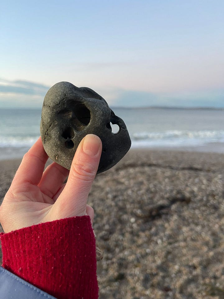There is much I could say and want to say about what is unfolding in the world, but for today I simply want to offer you the beauty of Witchstones, Holeystones found on the beach. You can see videos of the left hand one, which has three holes, and another I found the night of the last full moon in my notes. I wrote a little of the folklore here, but it is suffice for today to tell you that they are a protective object, a charm against the evil stalking our world.